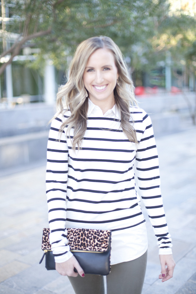 Love when a shirt is worn in multiple ways!! I love the stripes too.